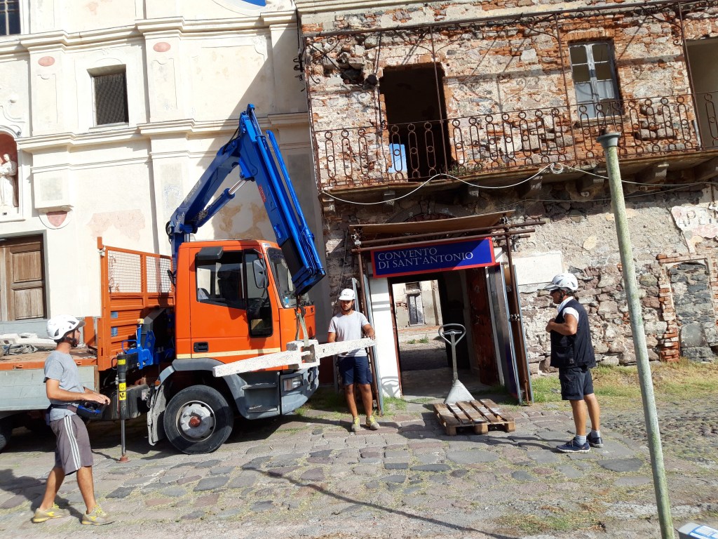 Il 2 settembre, con l’approvazione della Soprintendenza e del Comune e il fattivo intervento delle maestranze e mezzi della Maricop, abbiamo trasferito cinque ceppi di ancore romane nel chiostro di S. Francesco. I ceppi sono stati ritrovati nei mari dell’isola ed erano depositate nella Torre e davanti al Municipio. Essi faranno parte del futuro museo.