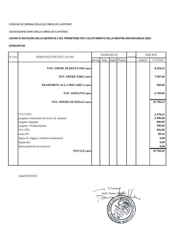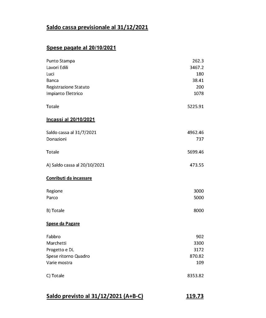 Come da allegato consuntivo delle spese si evince, in relazione al preventivo già pubblicato nel precedente verbale, quanto segue: