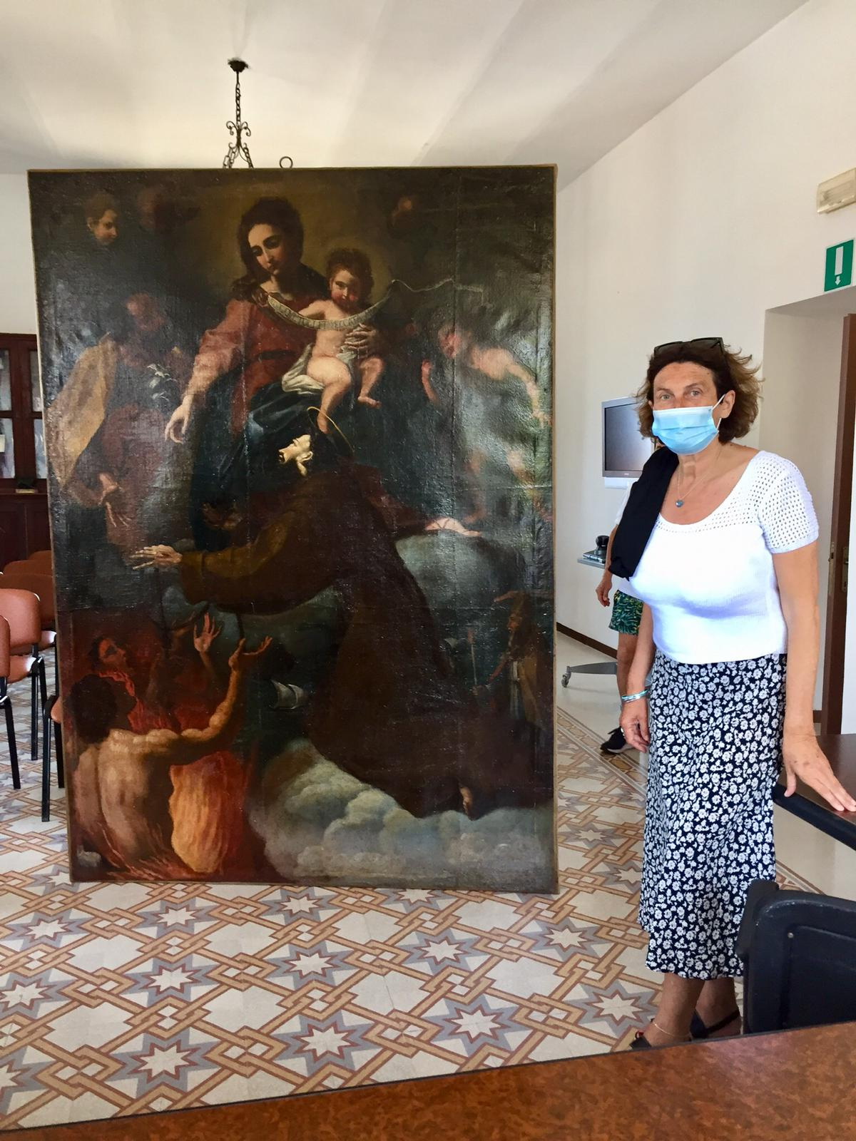 Il quadro è stato accolto dalla Sindaca Marida Bessi e dalla consigliera Antonella Vito ed è stato posto temporaneamente nella sala consiliare del Comune, in attesa che venga restaurata la cappella Gregory.