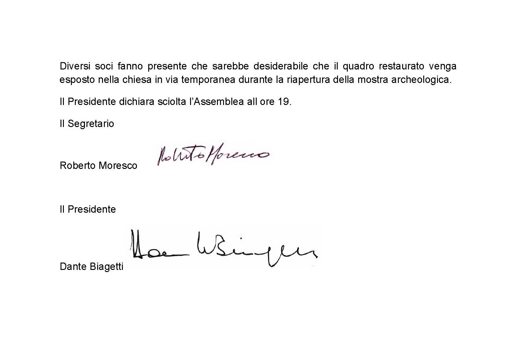 - La maggior parte dei presenti esprime il rammarico che la felice iniziativa di fondare l’Associazione giunga al suo termine dopo aver realizzato il restauro della Chiesa di S.Antonio