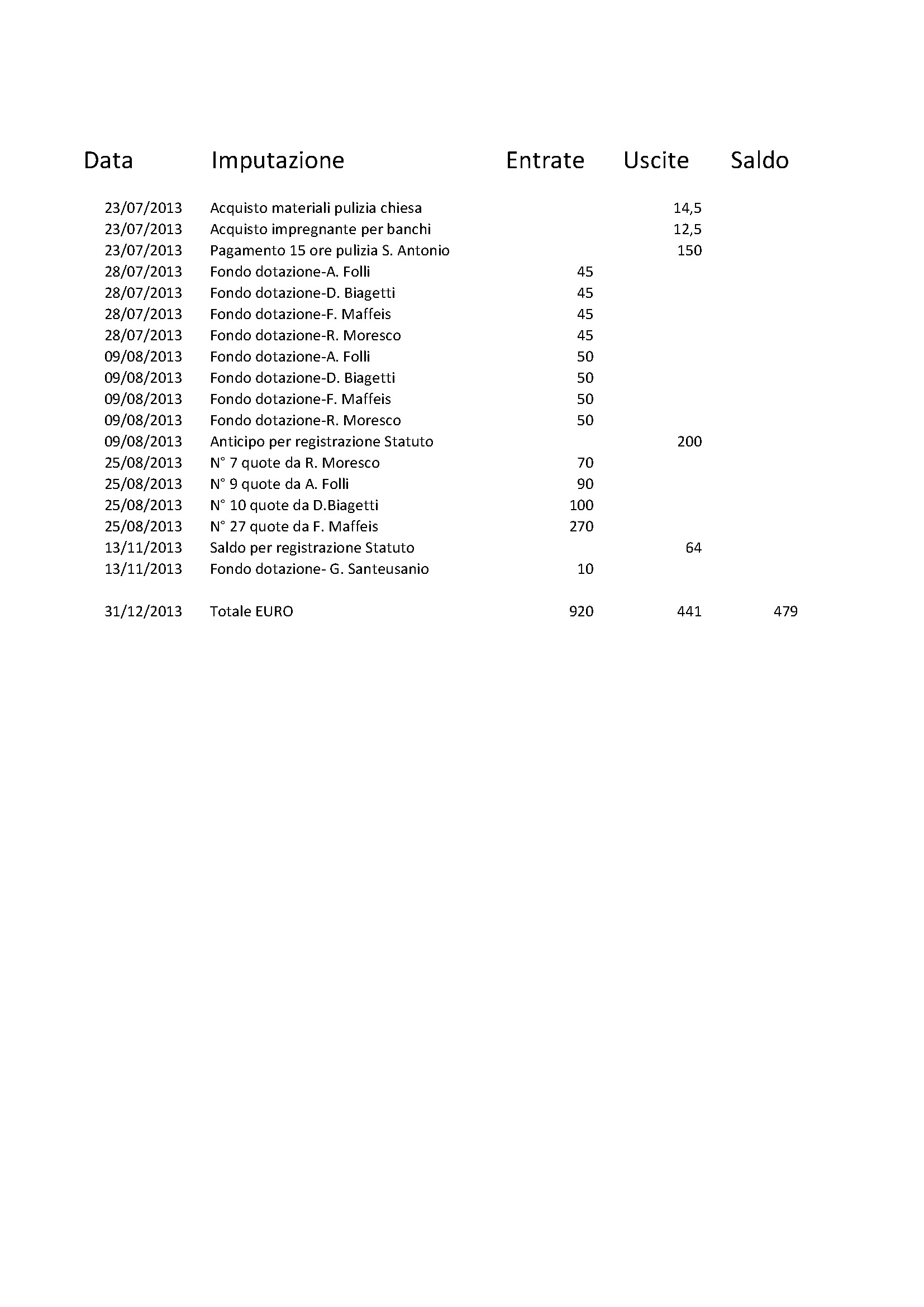 – È stata aperta la seguente partita IVA a nome dell’Associazione : 01792770495