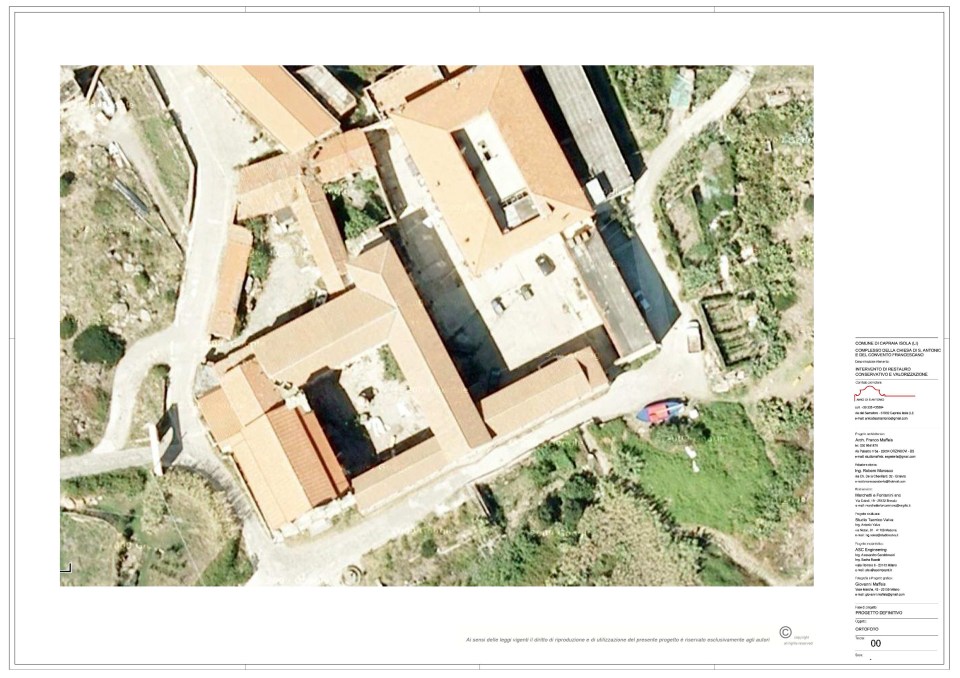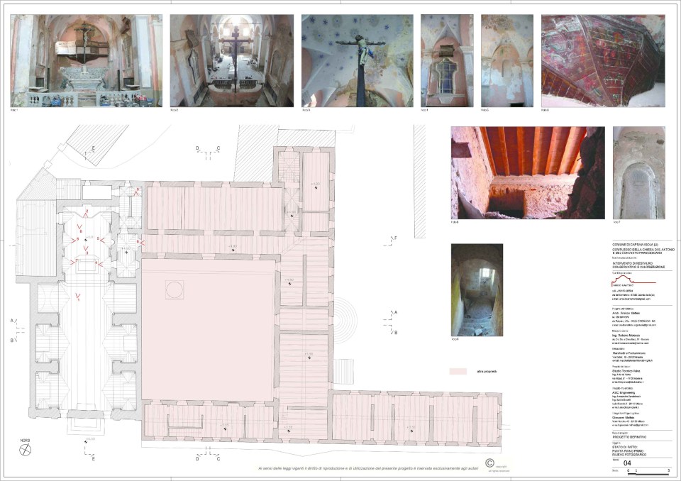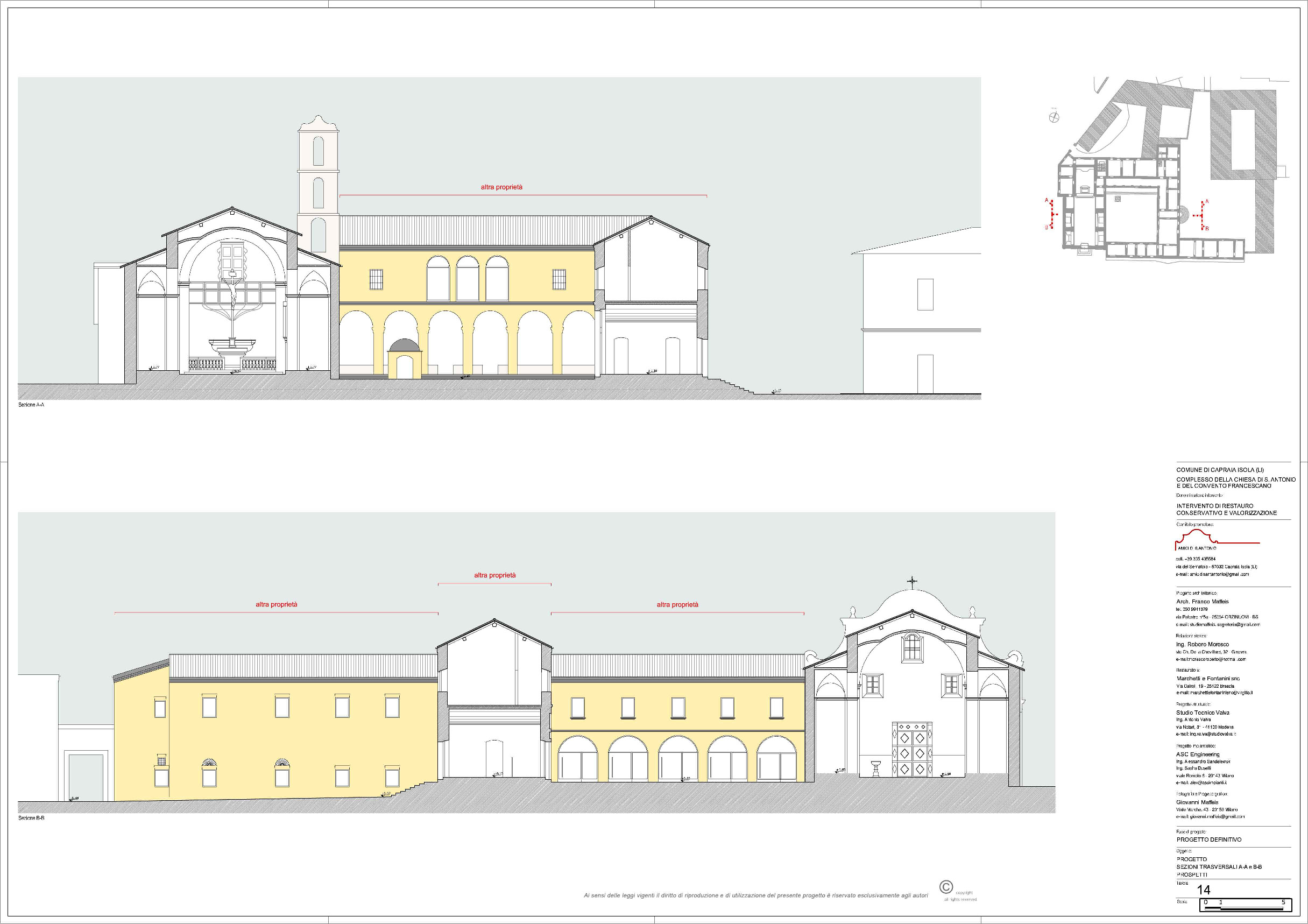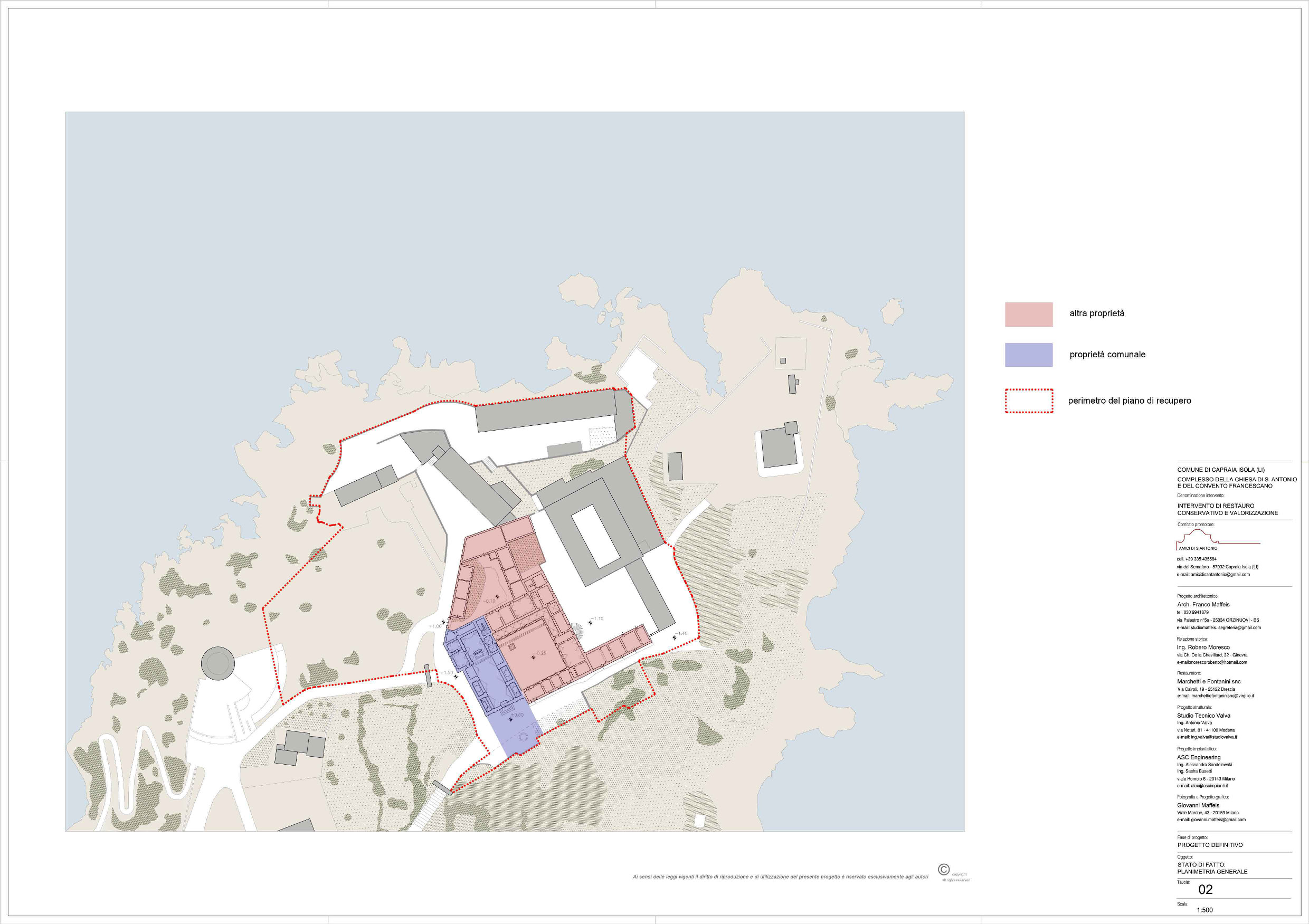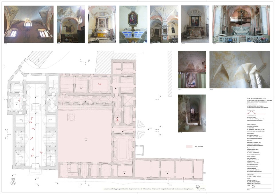 Il progetto riguarda specificatamente la Chiesa di S.Antonio, la cui proprietà risulta essere comunale. Le previsioni progettuali relative al Convento, la cui proprietà è invece in discussione,viene rappresentata come inquadramento generale, considerata l’unicità del complesso.