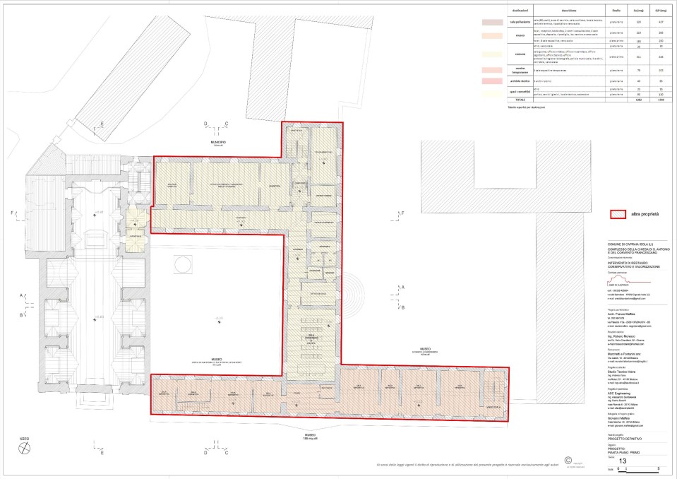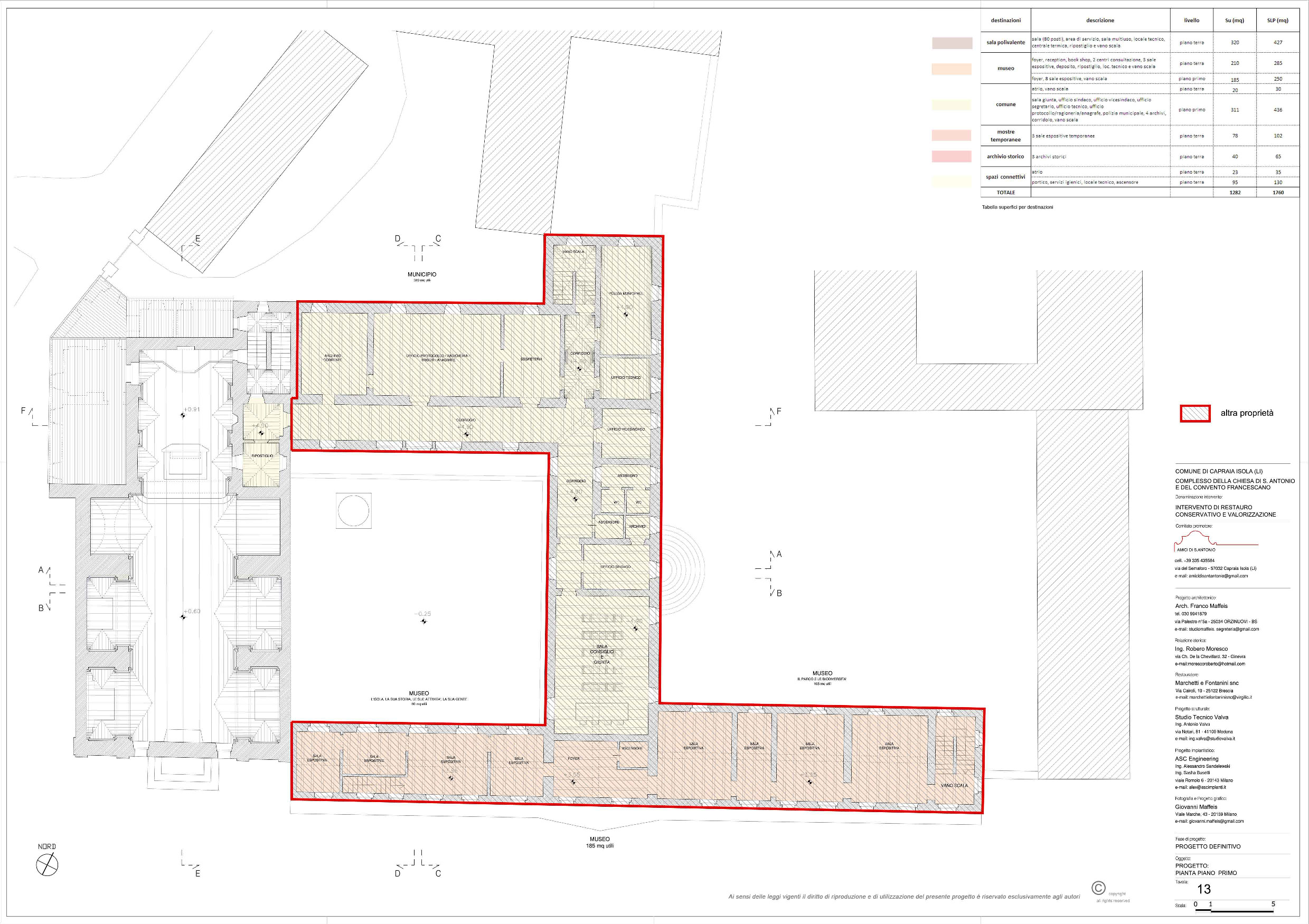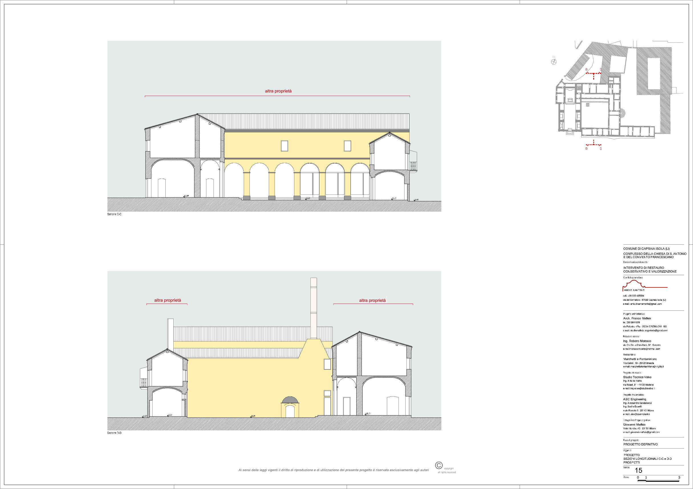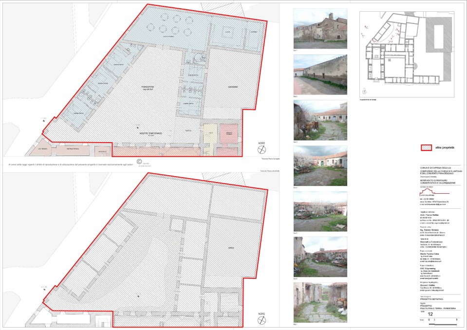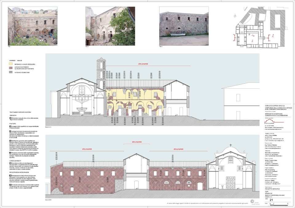 Il progetto riguarda specificatamente la Chiesa di S.Antonio, la cui proprietà risulta essere comunale. Le previsioni progettuali relative al Convento, la cui proprietà è invece in discussione,viene rappresentata come inquadramento generale, considerata l’unicità del complesso.