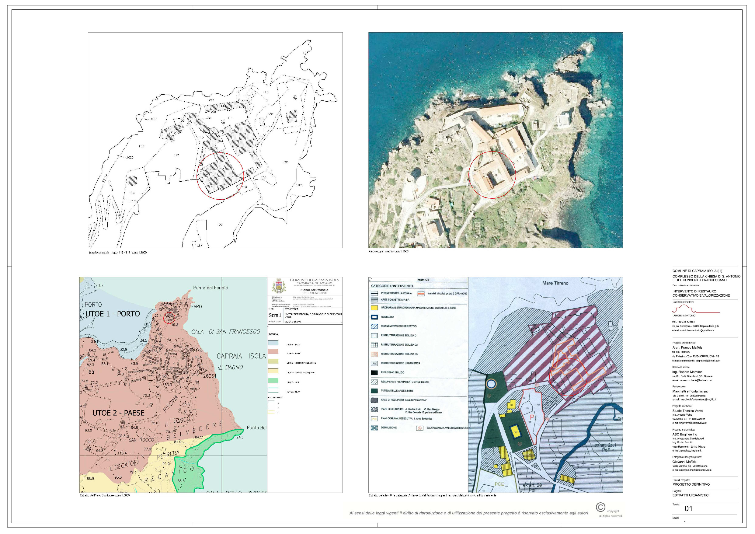 Il progetto di restauro attiene alla parte storica del complesso, costituita dalla Chiesa e dal Convento francescano. I volumi aggiunti nel corso degli anni per le esigenze dell’ex Colonia Penale non sono presi in considerazione, in quanto dovranno essere analizzati nel quadro del Piano di recupero previsto, all’interno del quale la parte storica rimarrà come invariante.