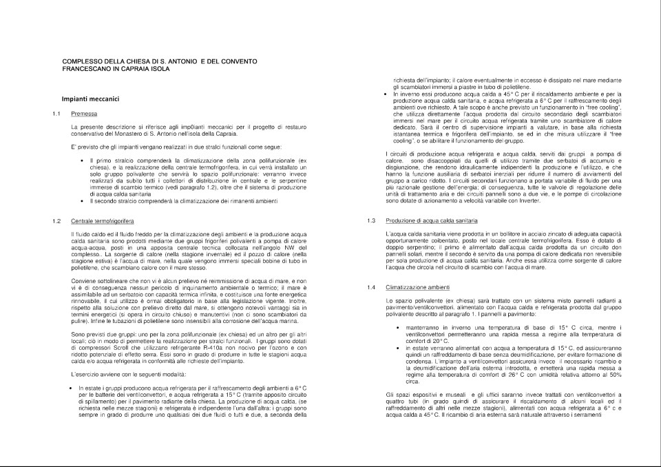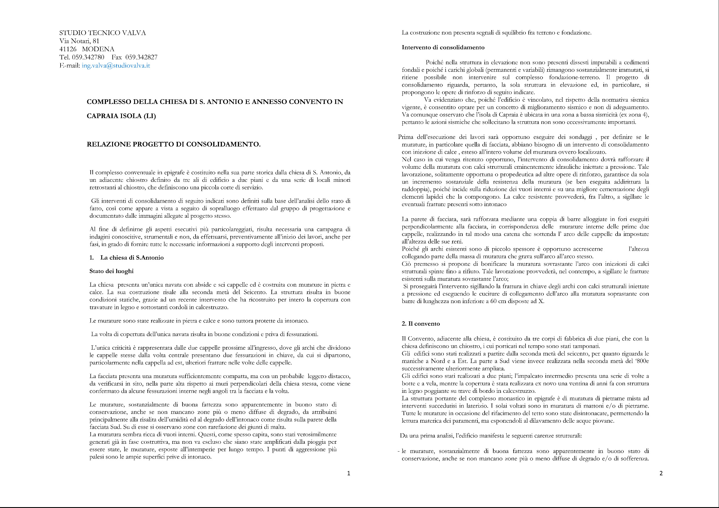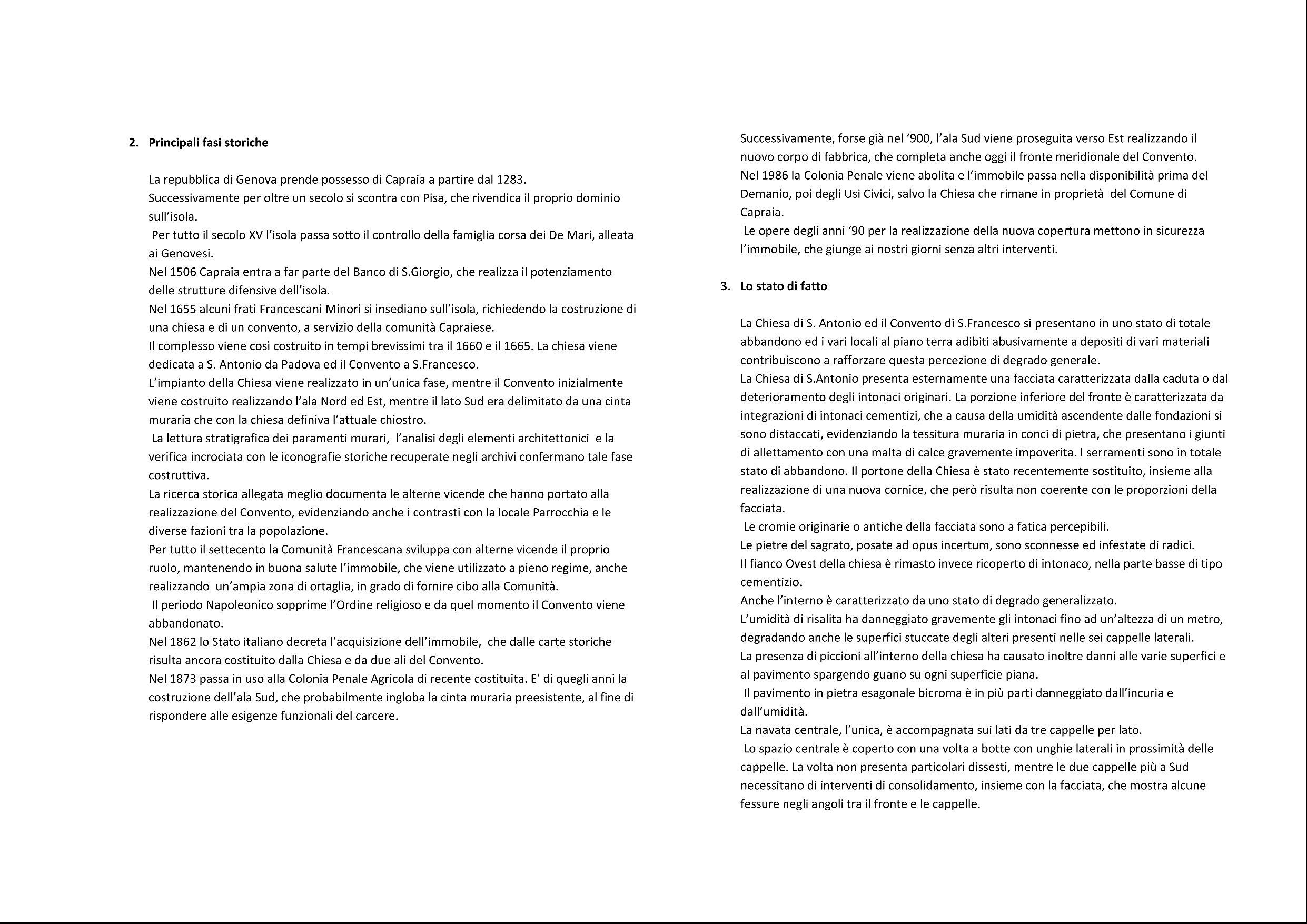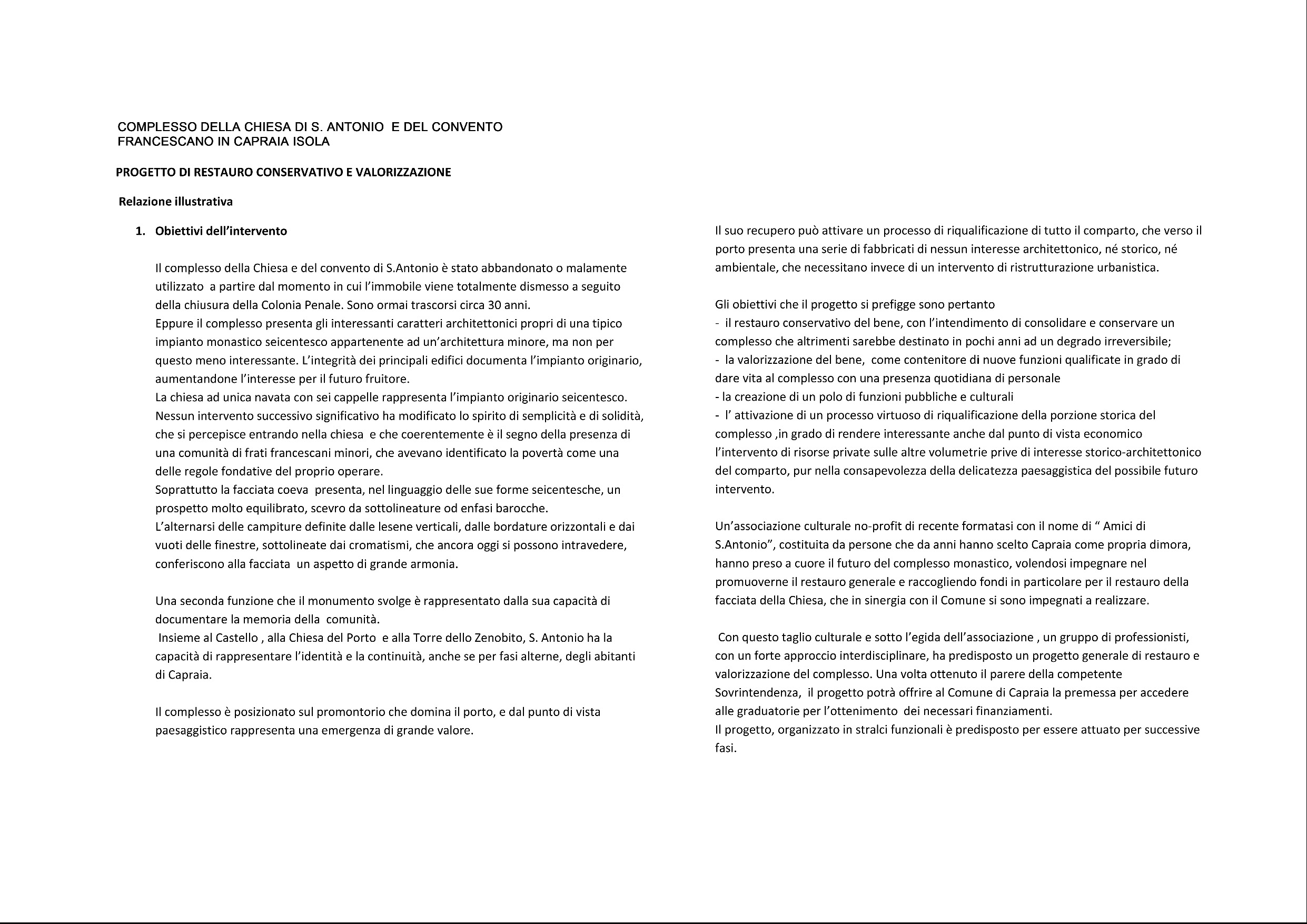 Il comune di Capraia Isola pertanto, recepito ed approvato il progetto di restauro, richiede il rilascio delle necessarie autorizzazioni solo per la Chiesa di S.Antonio.