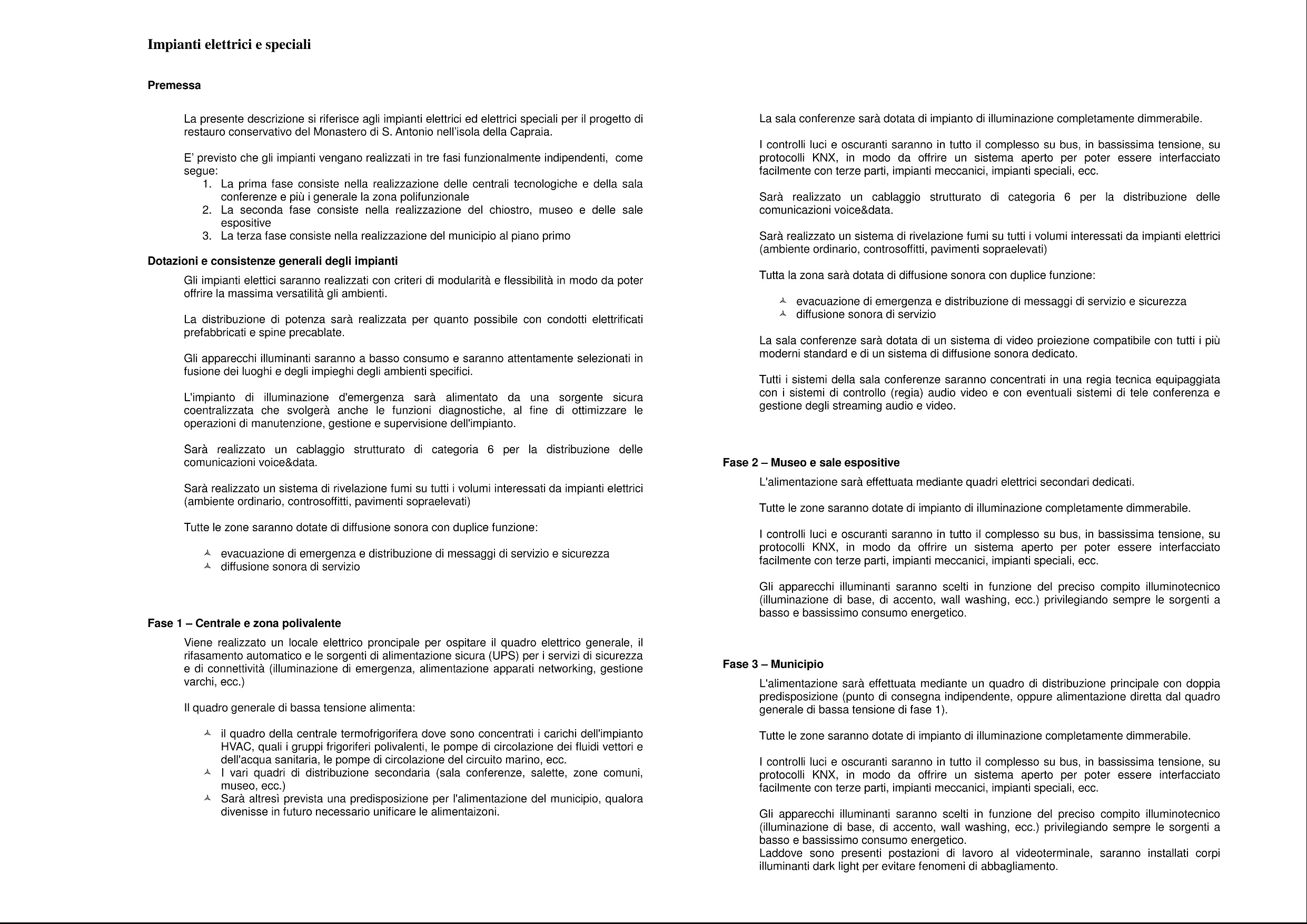 Il progetto, organizzato in stralci funzionali è predisposto per essere attuato per successive fasi.