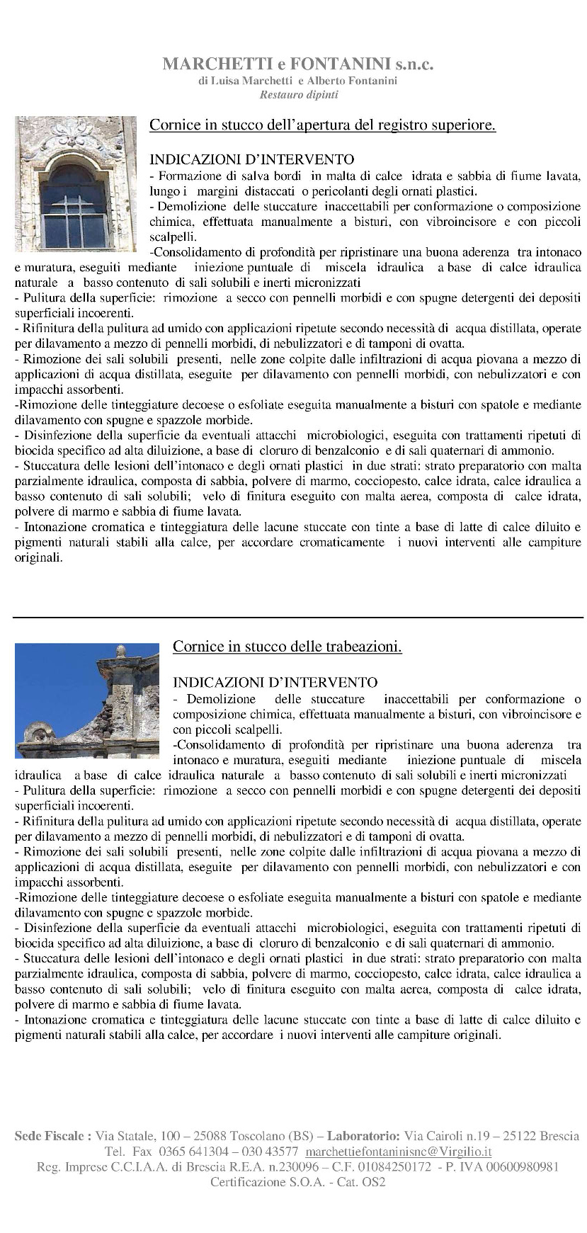 - Indagini conoscitive preliminari sulle murature, sulle superfici e sulle modanature.