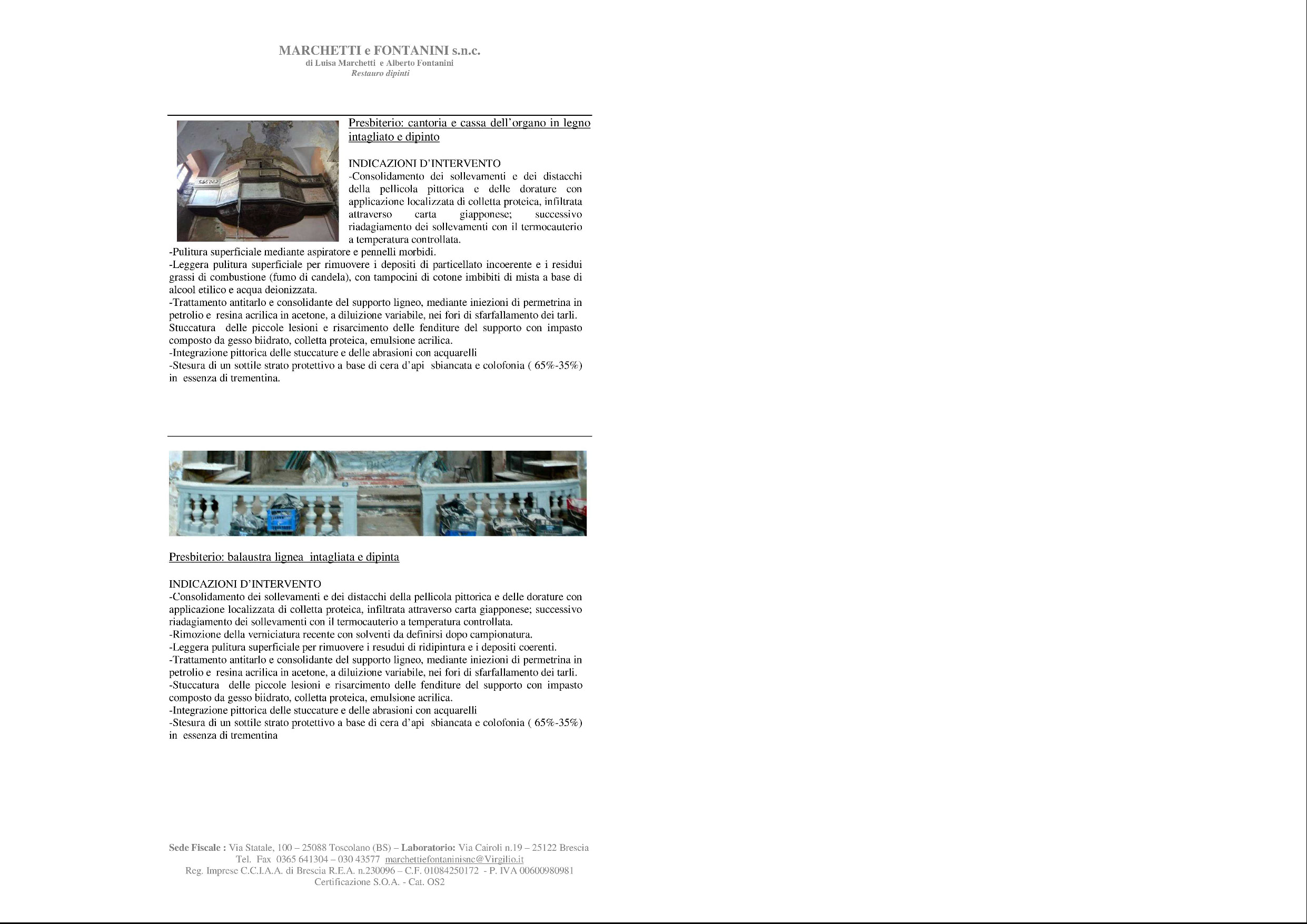 Anche il pianerottolo in legno dell’ organo ( non più presente), realizzato con raffinata manualita e rappresentante una porzione dello scafo di un naviglio , decorato con disegni policromi, necessita di un profondo restauro.