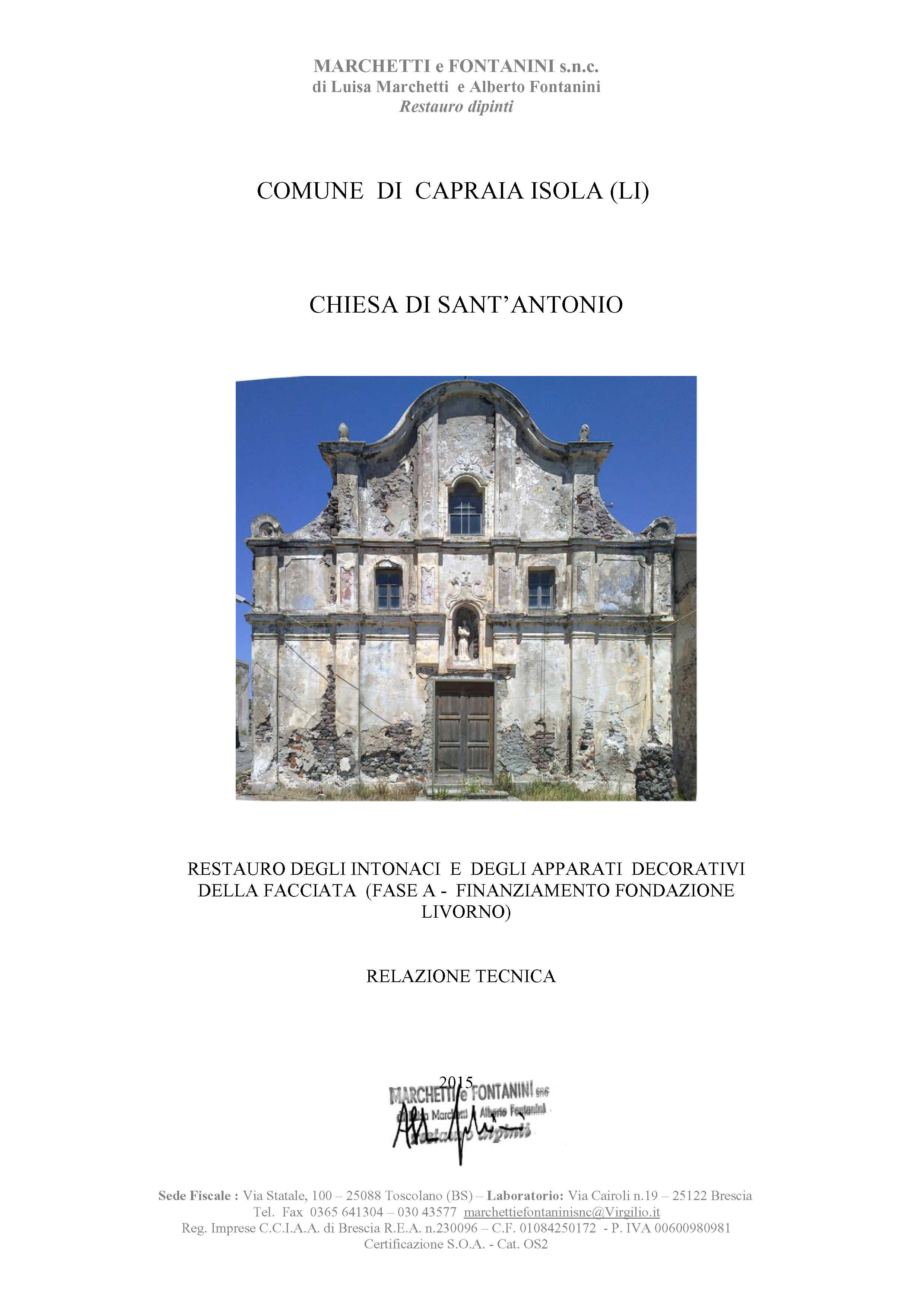 Me acerco a ustedes hoy para señalarles che junto a unos amigos de Capraia hemos creado la “Asociacion de los amigos de la Iglesia de S. Antonio en Capraia”.