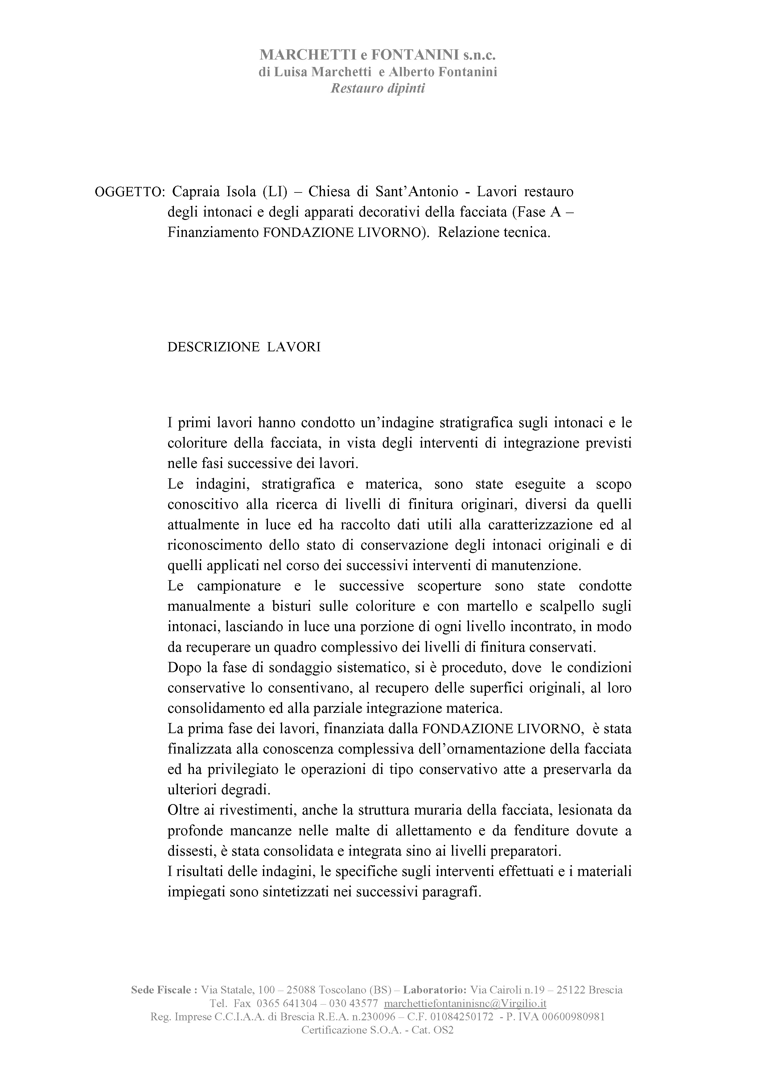 Il Presidente apre la sua relazione ricordando che, nonostante il dubbio iniziale sulla fattibilità dell’iniziativa volta a restaurare la facciata della chiesa di S. Antonio, si è riscontrata una fattiva collaborazione da parte delle Autorità Comunali, in primo luogo il Sindaco Gaetano Guarente, e da parte della Sovrintendenza per i Beni Architettonici, Paesaggistici, Storici ed Etnoantropologici per le Province di Pisa e Livorno.