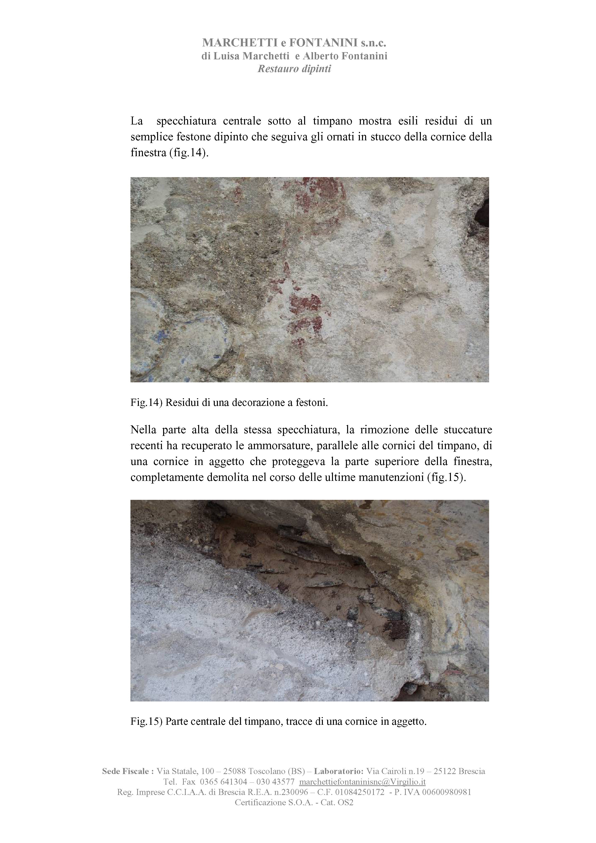 Dopo la prima fare di ricognizione dello stato della facciata, le restauratrici hanno intrapreso il consolidamento delle superfici danneggiate e pericolanti. I danni dovuti al tempo e all’incuria si sono rivelati molto più gravi di quanto era apparso durante le ispezioni preliminari. Successivamente si sono individuati dei vuoti nella struttura della facciata che hanno richiesto l’iniezione di diversi quintali di calce speciale. Ora sono in corso i lavori di stuccatura delle superfici e delle modanature. I lavori verranno sospesi per qualche tempo al fine di permettere il regolare svolgimento del tradizionale Festival di Musica.